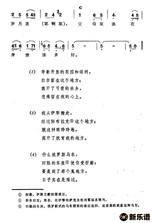 > 迫迁歌(新疆伊犁 维吾尔民歌 第二套《古兰木汗》)简谱