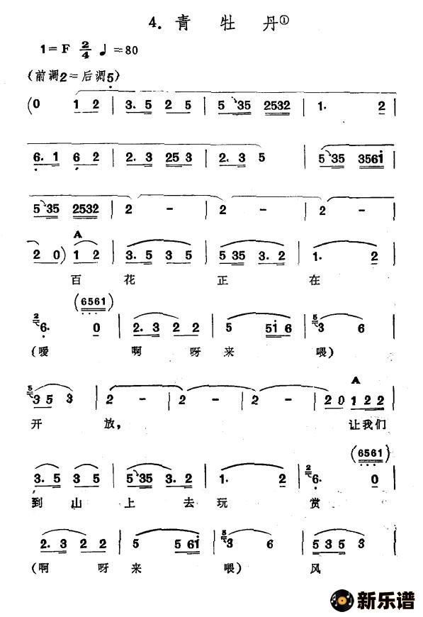 > 青牡丹(新疆伊犁 维吾尔民歌 第三套《收割歌》)简谱