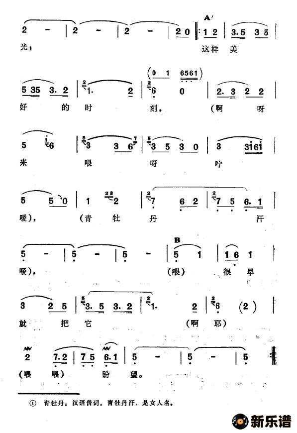 演唱的青牡丹(新疆伊犁 维吾尔民歌 第三套《收割歌》)歌词,青牡丹(新疆伊犁 维吾尔民歌 第三套《收割歌》)简谱.