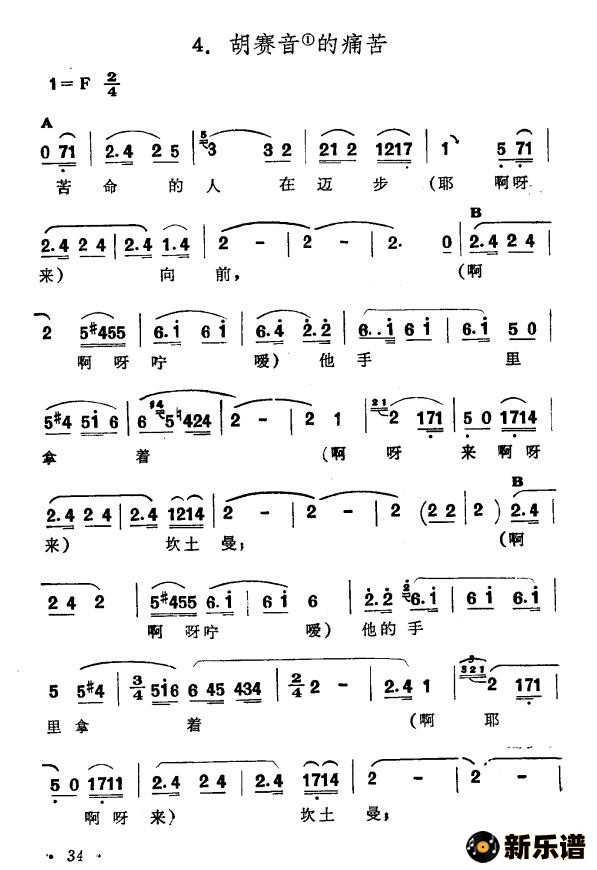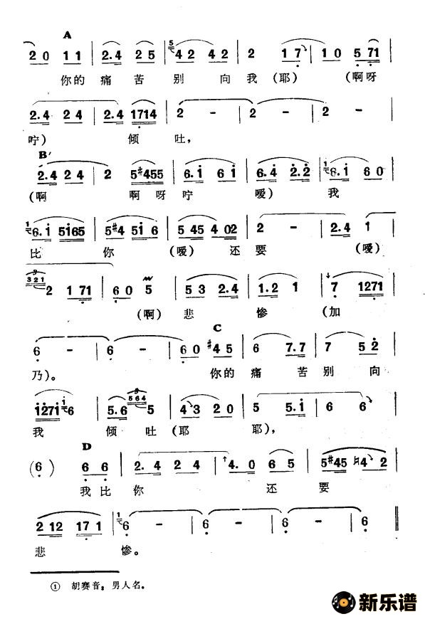 > 胡赛音的痛苦(?新疆伊犁 维吾尔民歌 第二套《?古兰木汗》)简谱