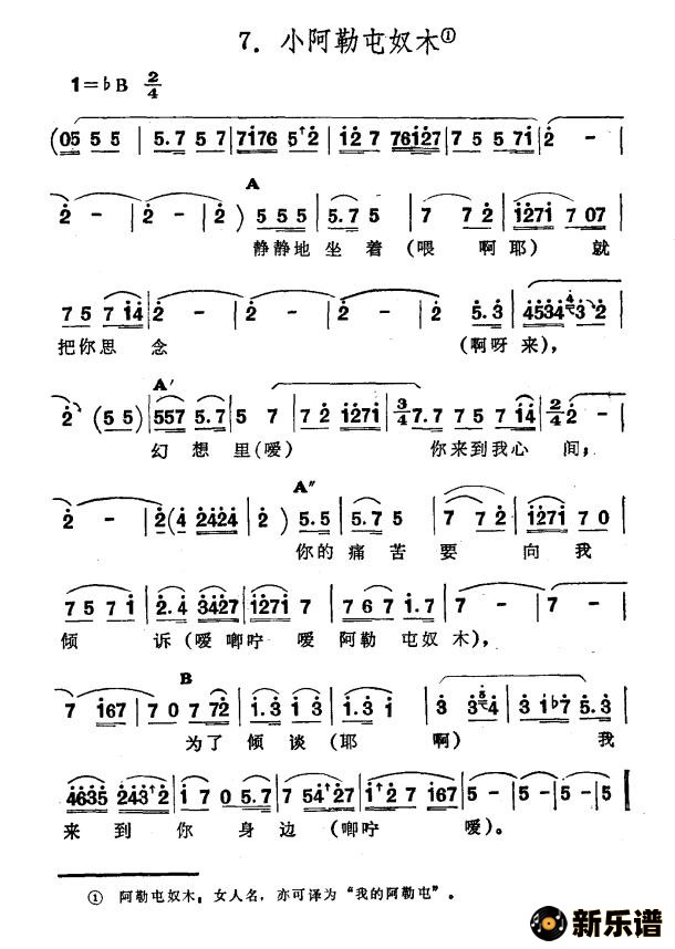 演唱的小阿勒屯奴木(新疆伊犁 维吾尔民歌 第五套《小汗莱龙》)歌词,小阿勒屯奴木(新疆伊犁 维吾尔民歌 第五套《小汗莱龙》)简谱.