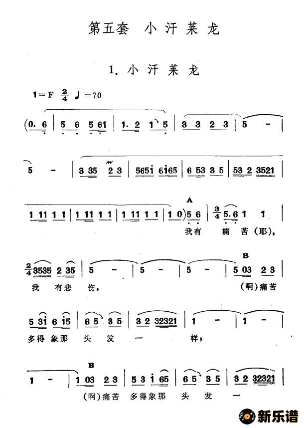 > 小汗莱龙(新疆伊犁 维吾尔民歌 第五套《小汗莱龙》)简谱