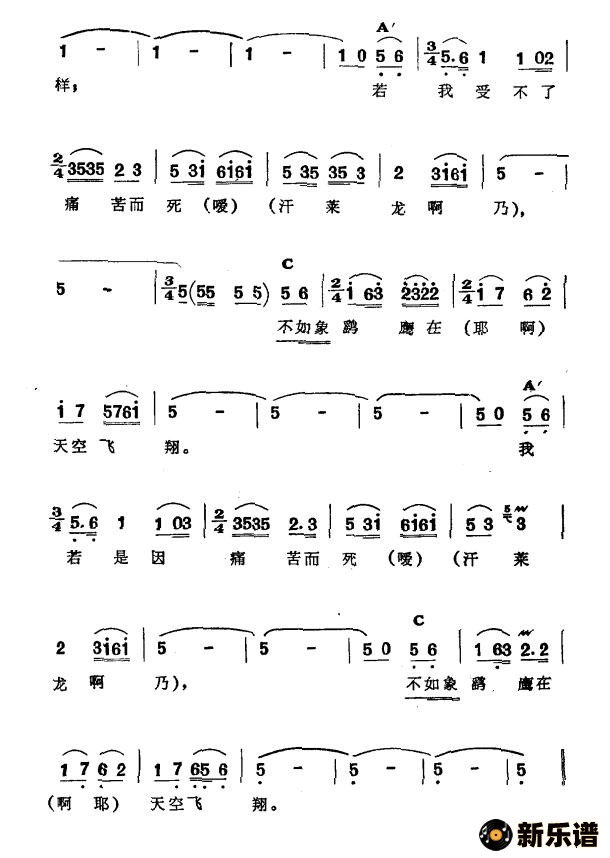 诺德尔卡木之歌(新疆伊犁 维吾尔民歌 第五套《小汗莱龙》)简谱