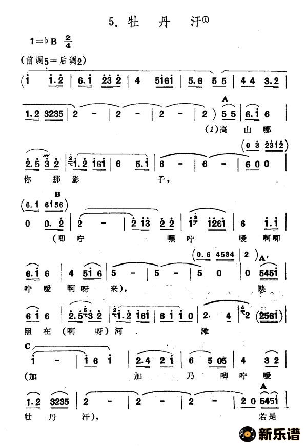《牡丹汗(新疆伊犁 维吾尔民歌 第三套《收割歌》)》简谱