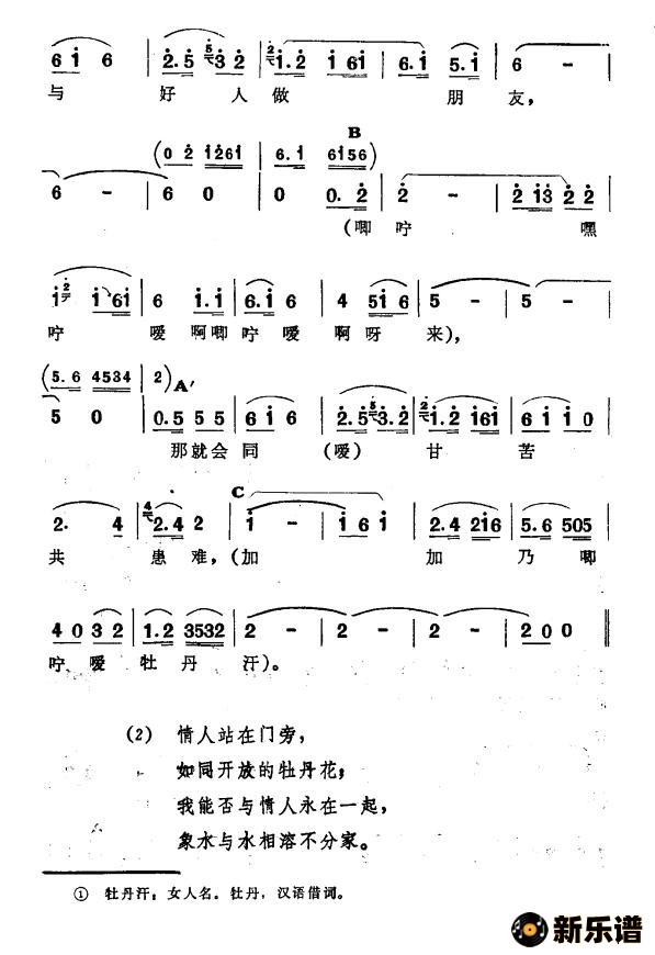 > 牡丹汗(新疆伊犁 维吾尔民歌 第三套《收割歌》)简谱
