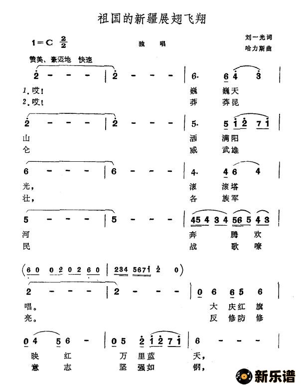 祖国的新疆展翅飞翔/哈力斯 相关曲谱
