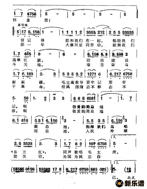 《周总理啊,新疆各族人民怀念您》简谱 刘澍民 裘辑星