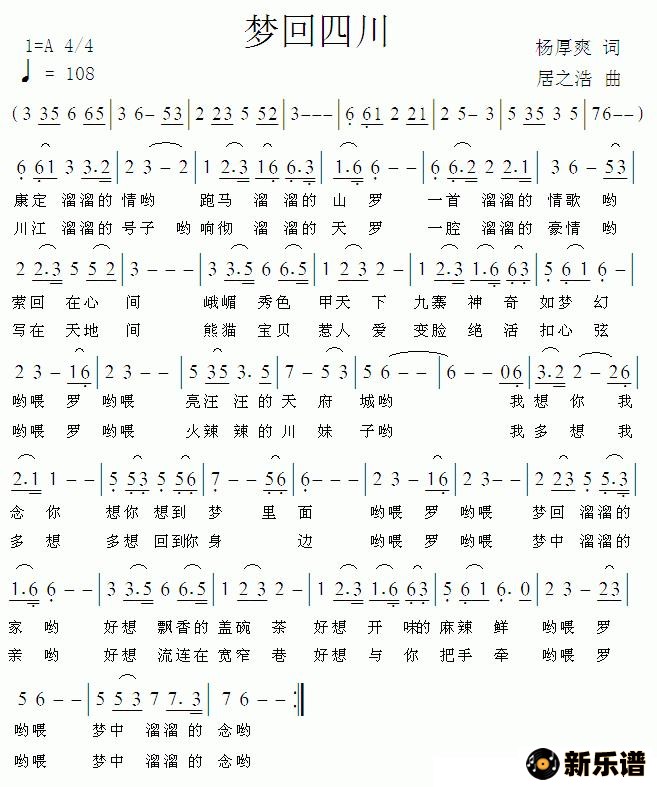 《梦回四川(杨厚爽词 居之浩曲)》简谱