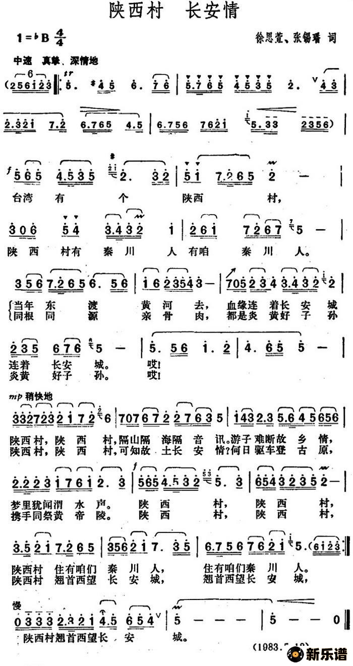 演唱的陕西村 长安情(徐思萱、张锡璠词 胡俊成曲)歌词,陕西村 长安情(徐思萱、张锡璠词 胡俊成曲)简谱.