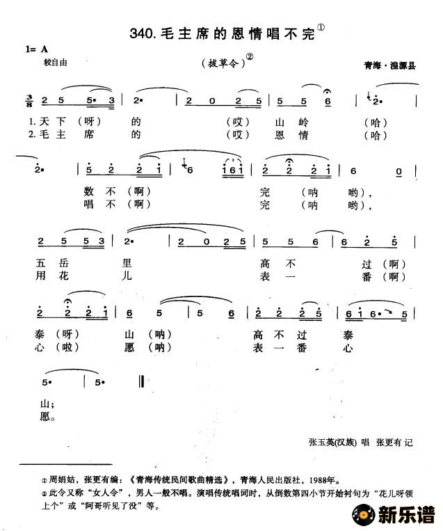 演唱的毛主席的恩情唱不完(青海花儿)歌词,毛主席的恩情唱不完(青海花儿)简谱.