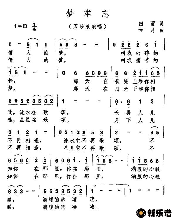 万沙浪演唱的梦难忘歌词,梦难忘简谱.