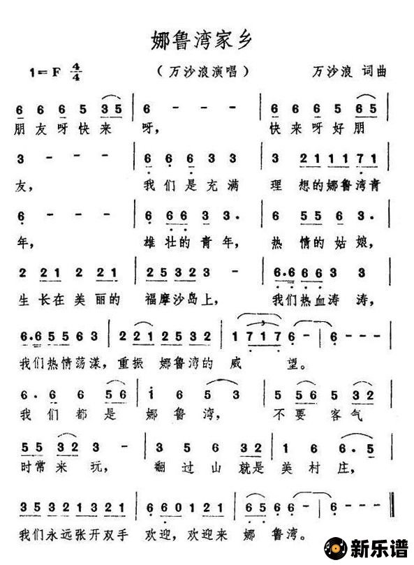 万沙浪演唱的娜鲁湾家乡歌词,娜鲁湾家乡简谱.