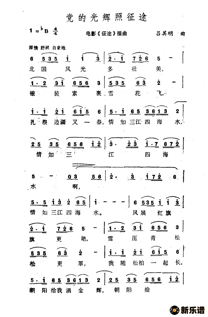 党的光辉照征途(故事片《征途》插曲)/胡松华 征途 相关曲谱