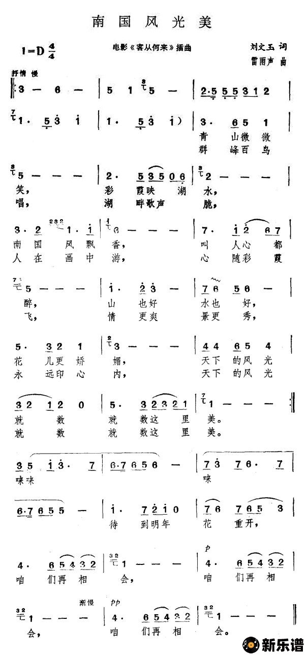 李谷一演唱的南国风光美(电影《客从何来》插曲)歌词,南国风光美(电影《客从何来》插曲)简谱.