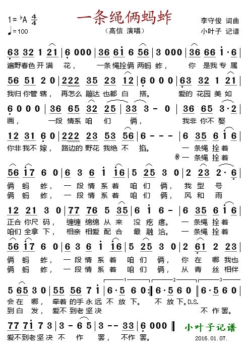《一条绳俩蚂蚱》简谱 高信-小叶子制谱