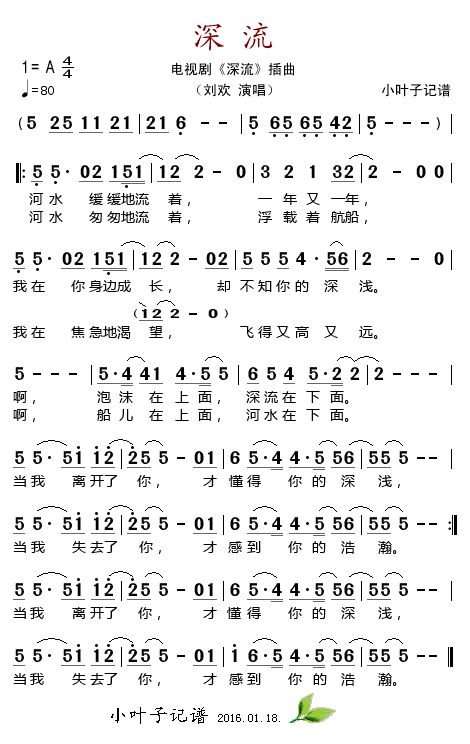 《深流(电视剧《深流》插曲)》简谱 刘欢-小叶子制谱