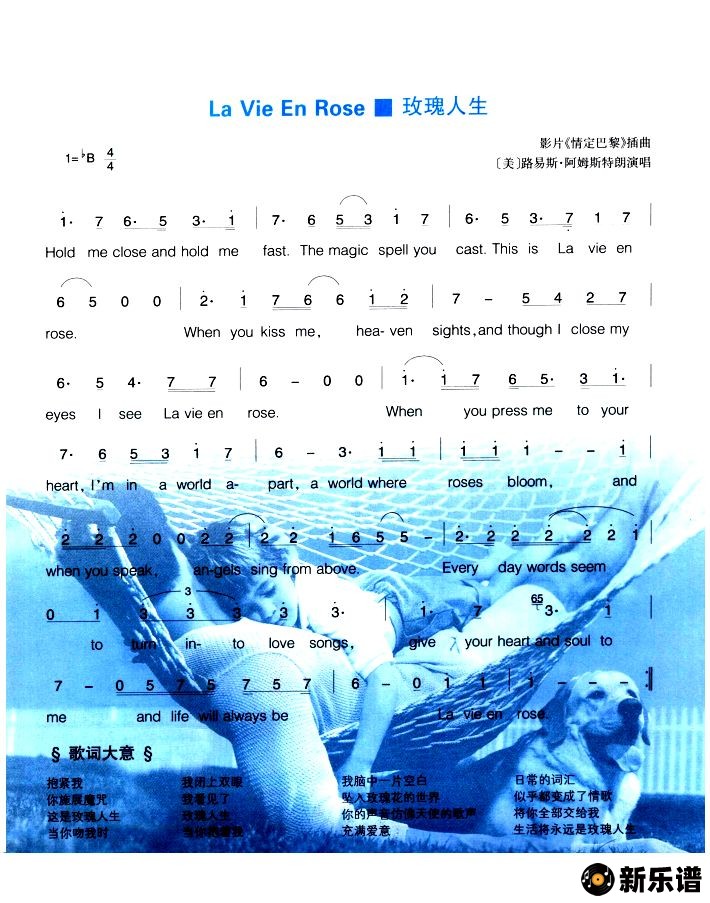 路易斯.阿姆斯特朗演唱的玫瑰人生(电影《情定巴黎》插曲)歌词,玫瑰人生(电影《情定巴黎》插曲)简谱.