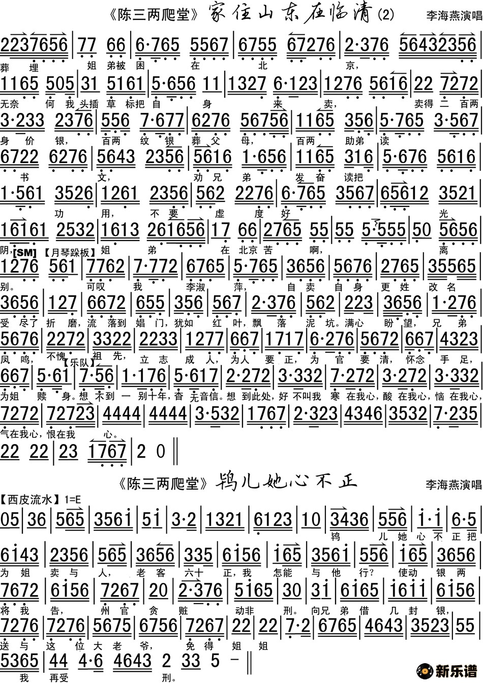 李海燕演唱演唱的家住山东在临清2歌词,家住山东在临清2简谱.