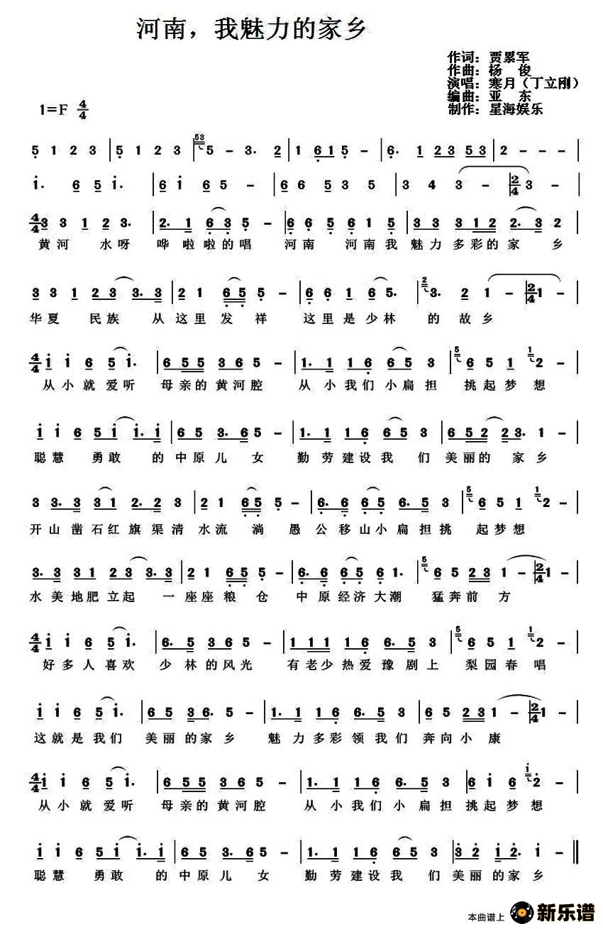 演唱的河南,我魅力的家乡歌词,河南,我魅力的家乡简谱.