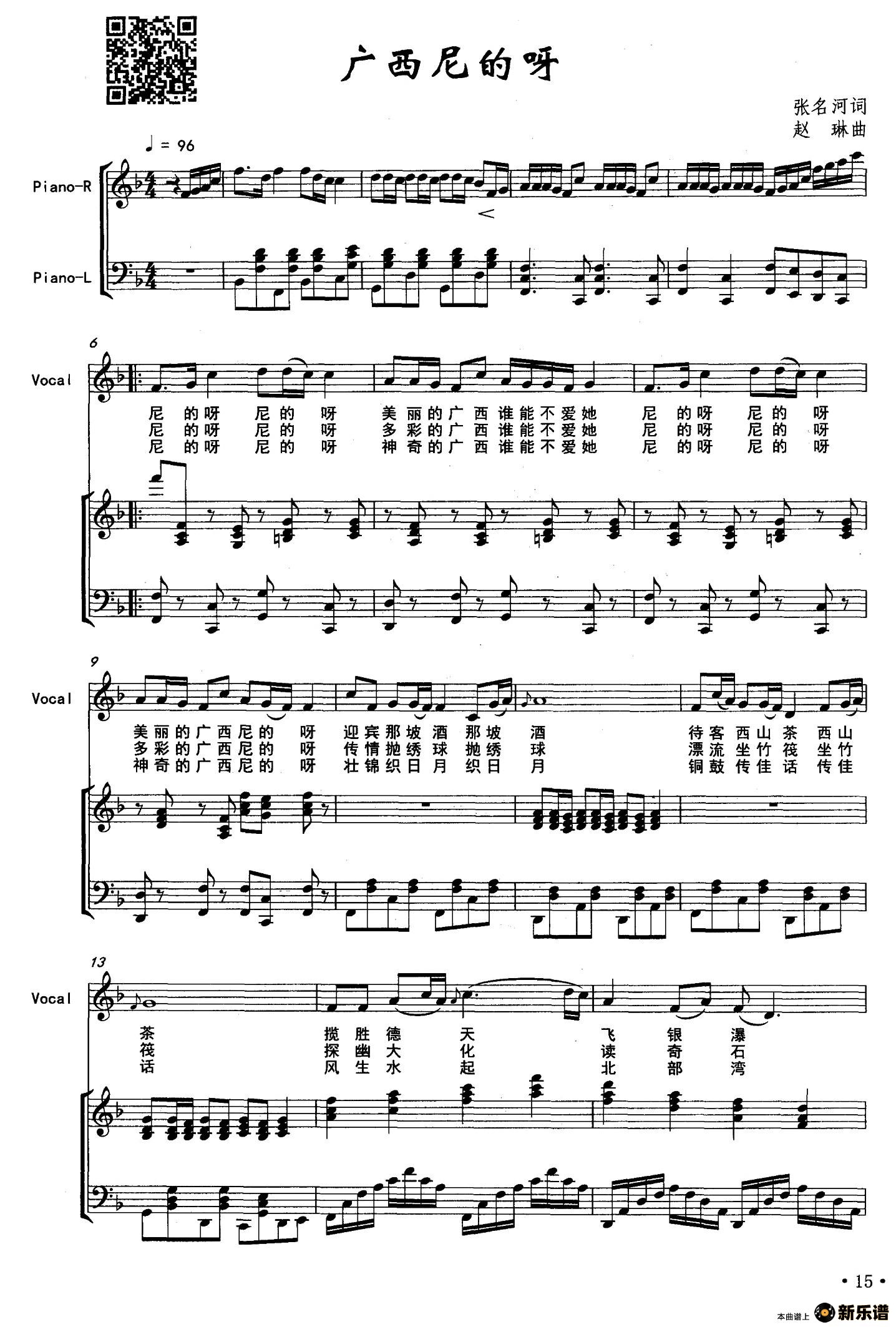 演唱的广西尼的呀(正谱)歌词,广西尼的呀(正谱)简谱.