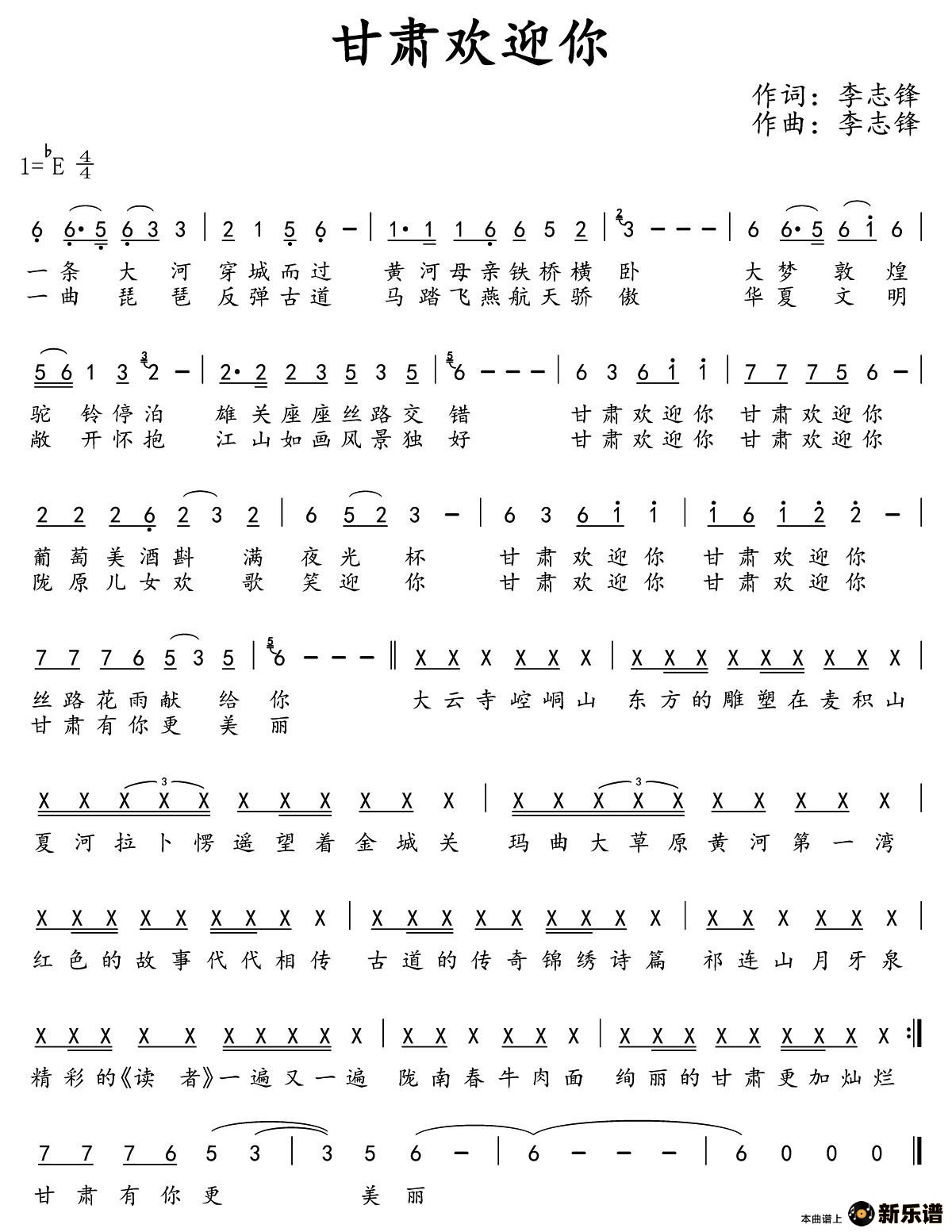 演唱的甘肃欢迎你歌词,甘肃欢迎你简谱.
