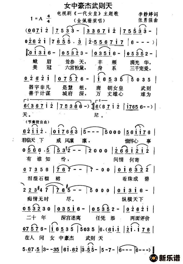 金佩珊演唱的女中豪杰武则天(电视剧《一代女皇》主题歌)歌词,女中豪杰武则天(电视剧《一代女皇》主题歌)简谱.