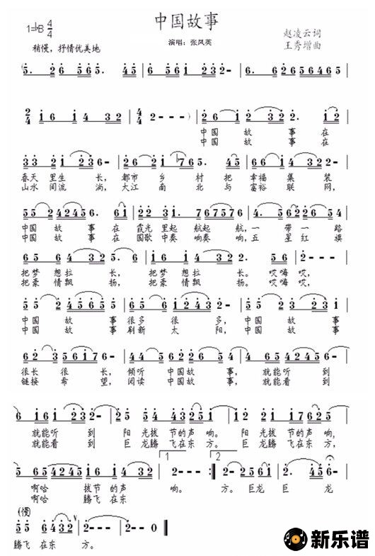 张凤英演唱的中国故事歌词,中国故事简谱.