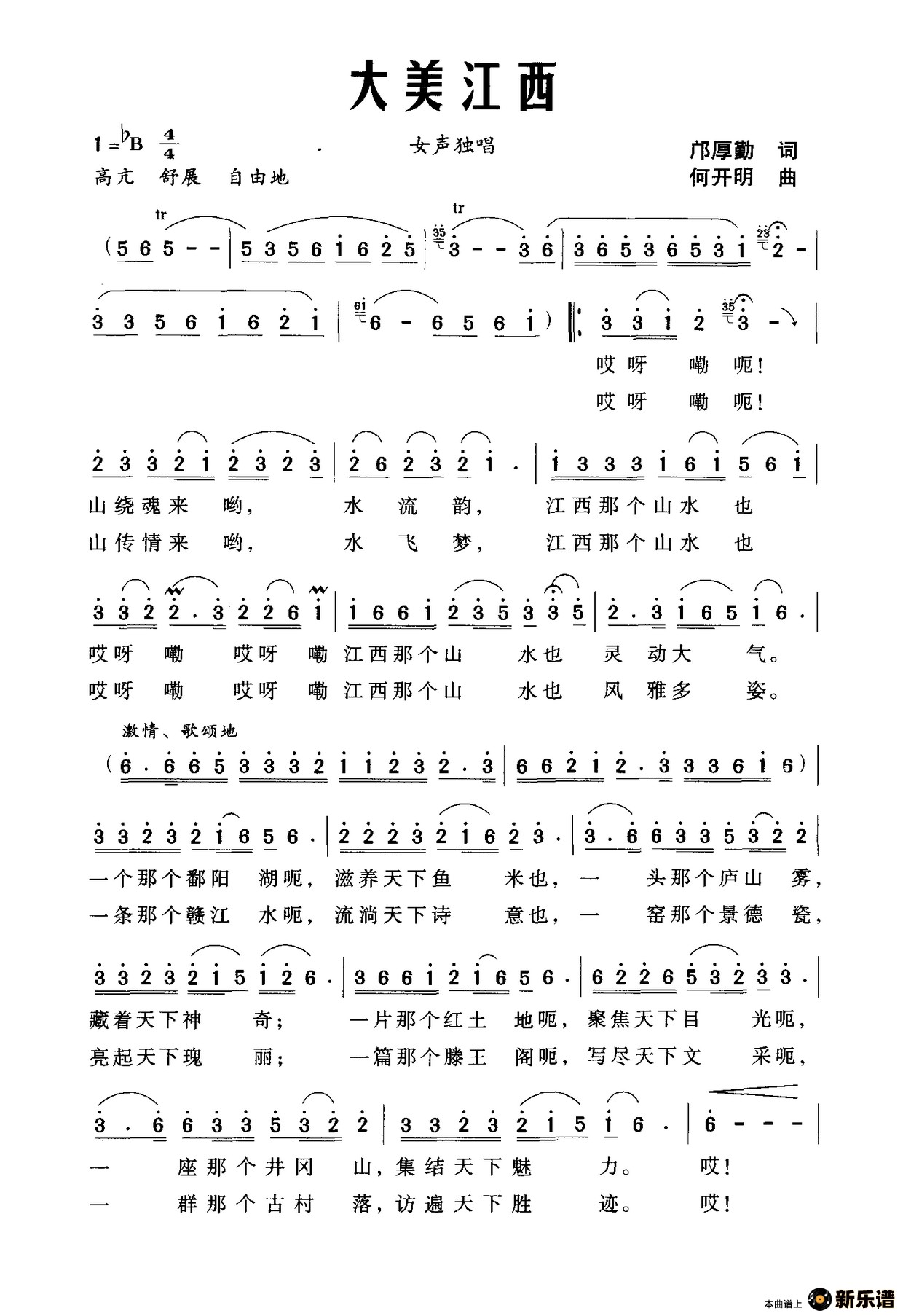 演唱的大美江西歌词,大美江西简谱.