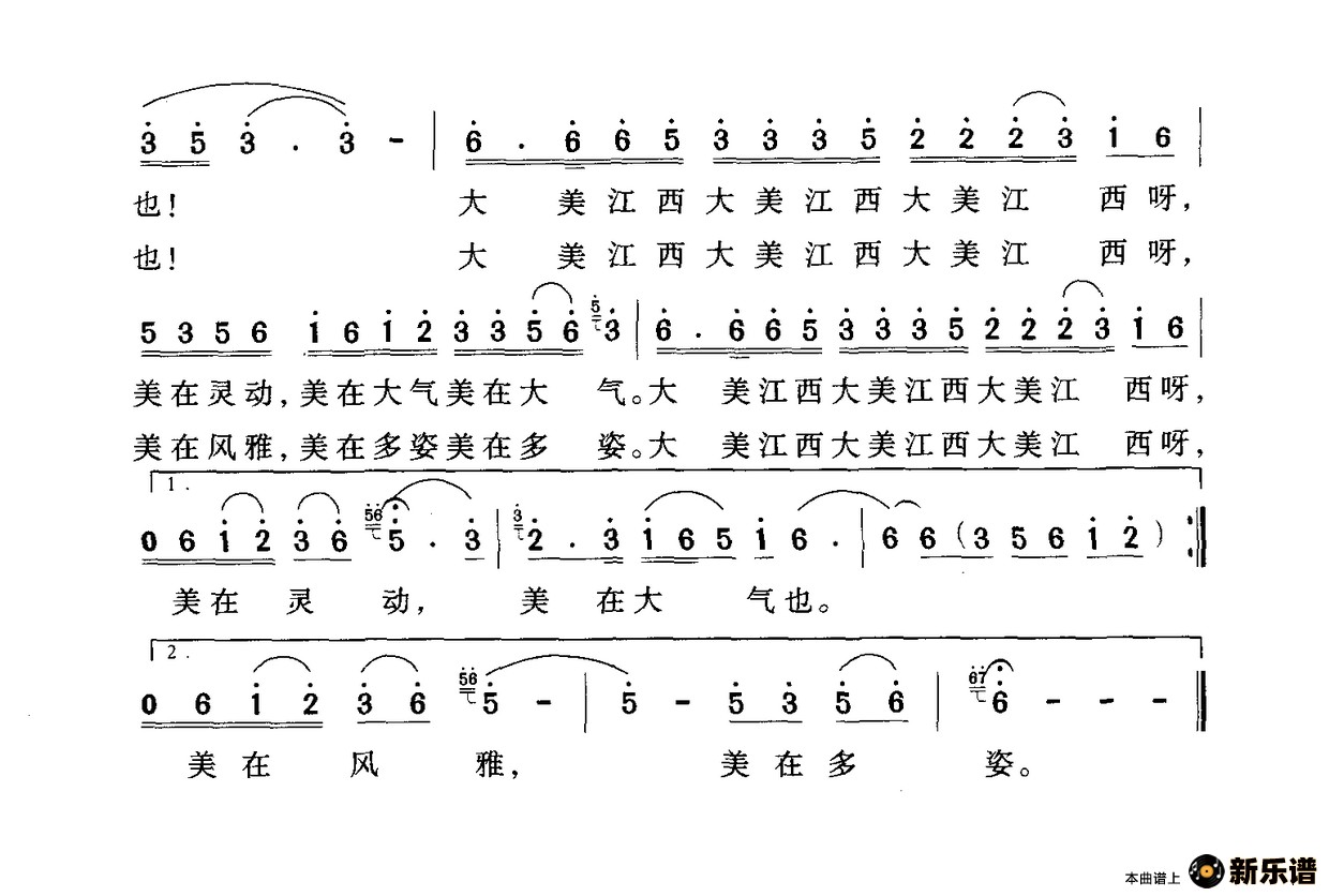 《大美江西》简谱