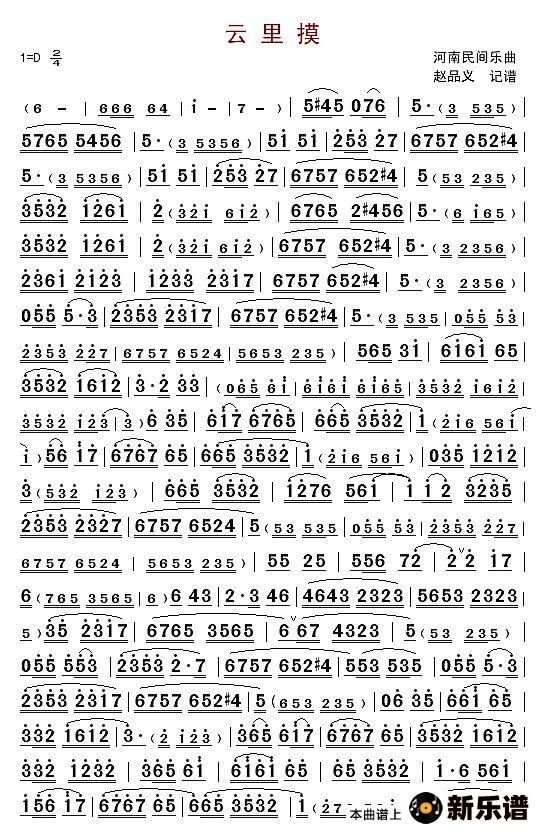 演唱的云里摸(河南民间乐曲)歌词,云里摸(河南民间乐曲)简谱.