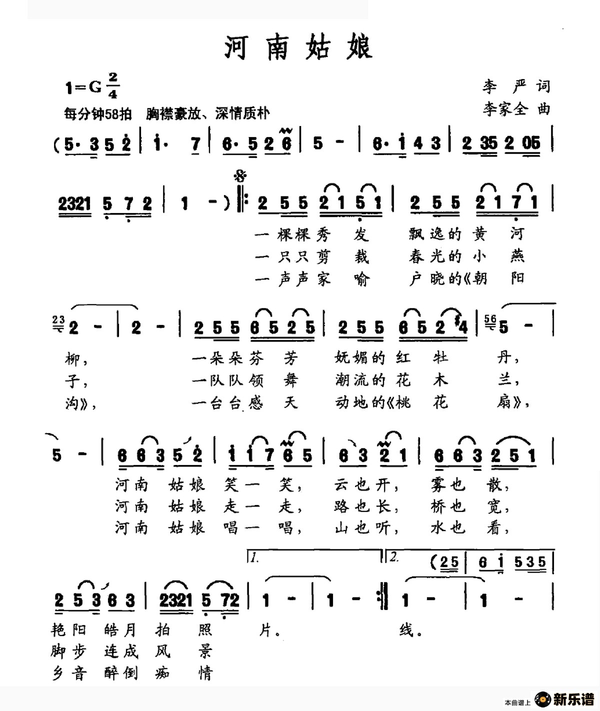 演唱的河南姑娘歌词,河南姑娘简谱.