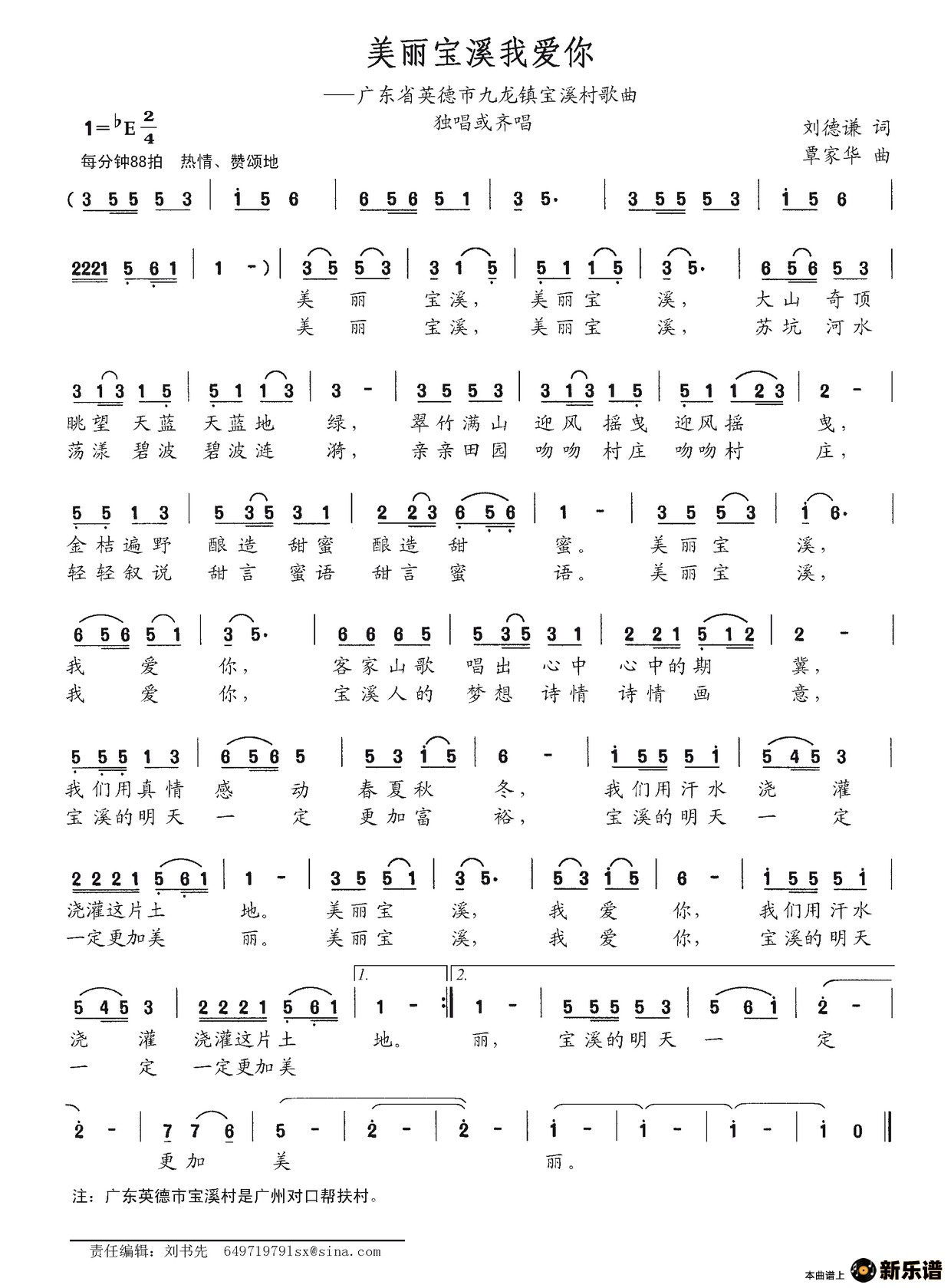 演唱的美丽宝溪我爱你(广东省英德市九龙镇宝溪村歌曲)歌词,美丽宝溪我爱你(广东省英德市九龙镇宝溪村歌曲)简谱.