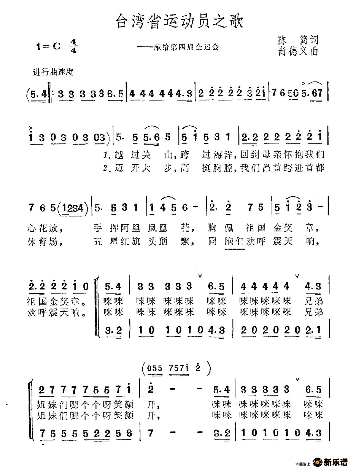 《台湾省运动员之歌》简谱