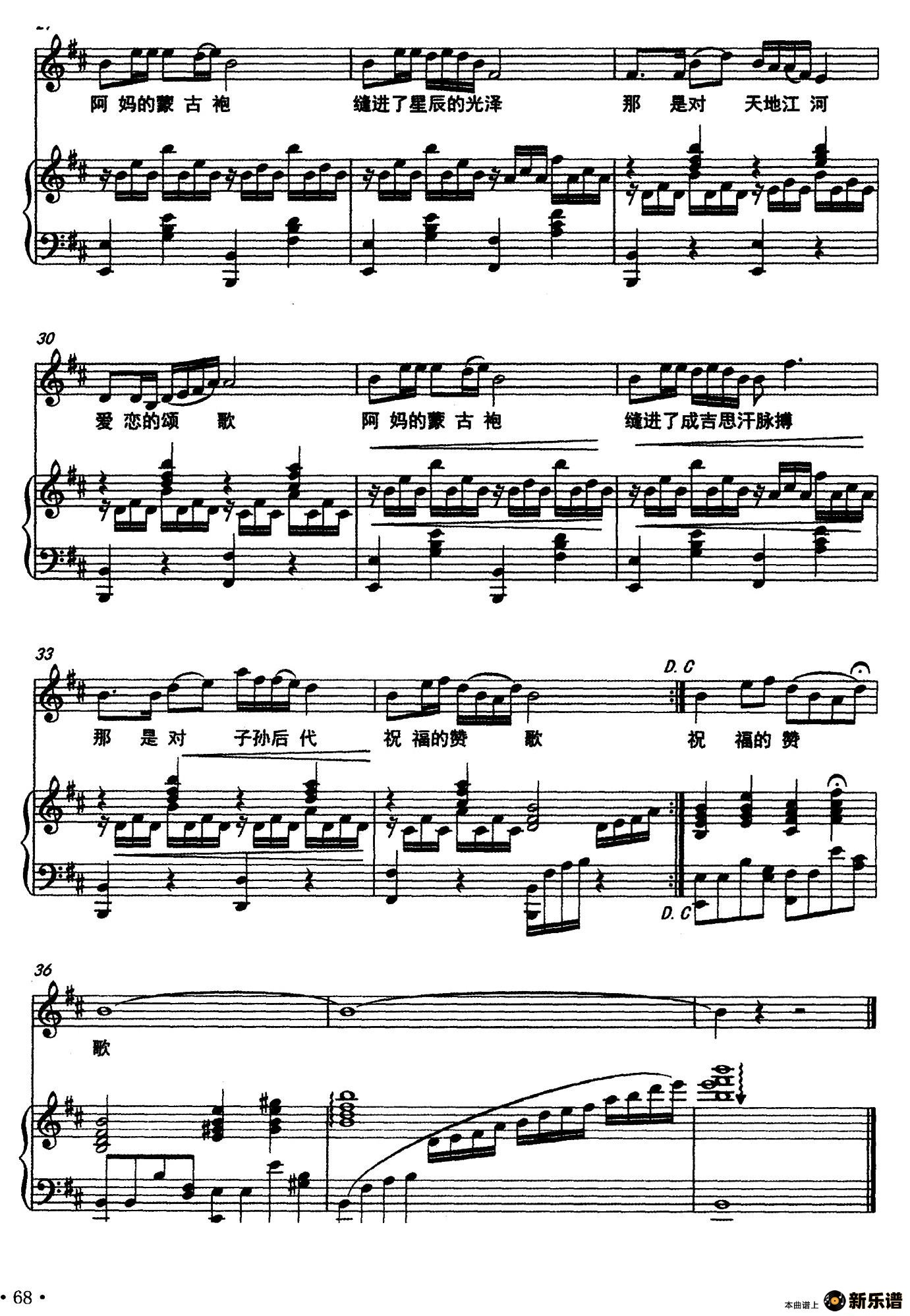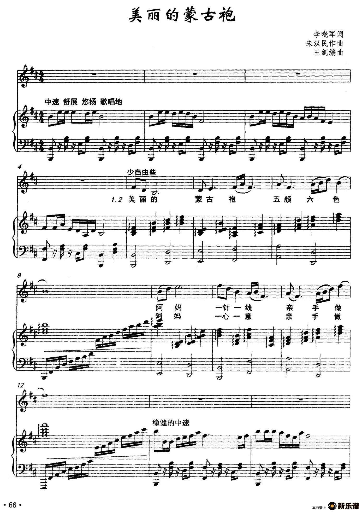 演唱的美丽的蒙古袍(正谱)歌词,美丽的蒙古袍(正谱)简谱.