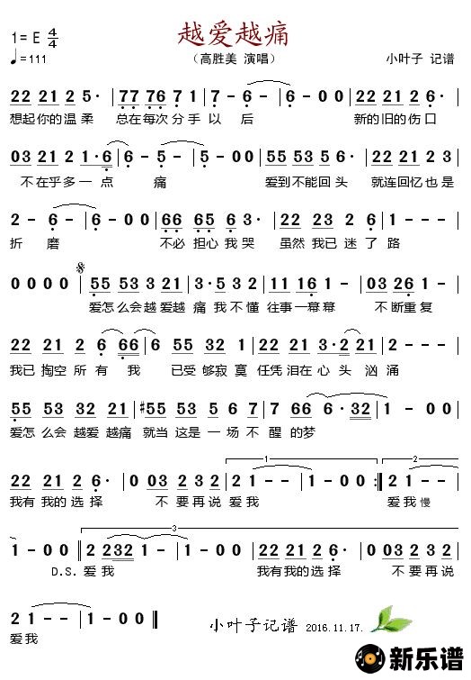 《越爱越痛》简谱 高胜美-小叶子制谱