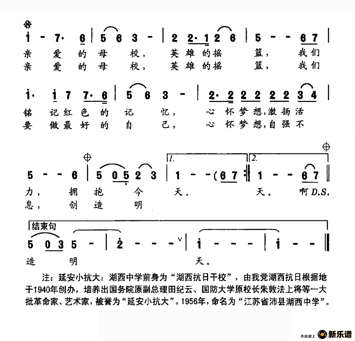 > 青春誓言(江西省沛县湖西中学校歌)简谱