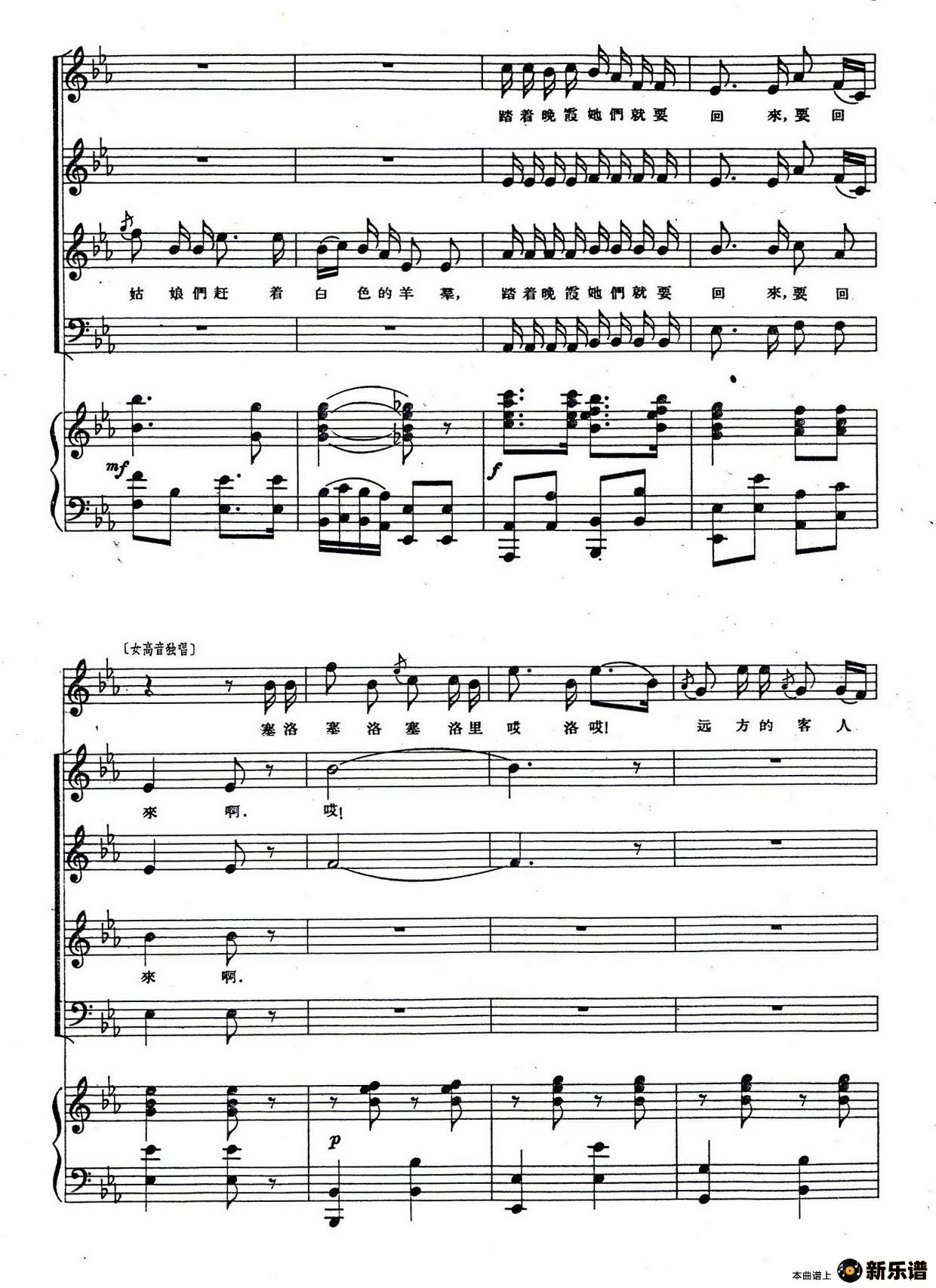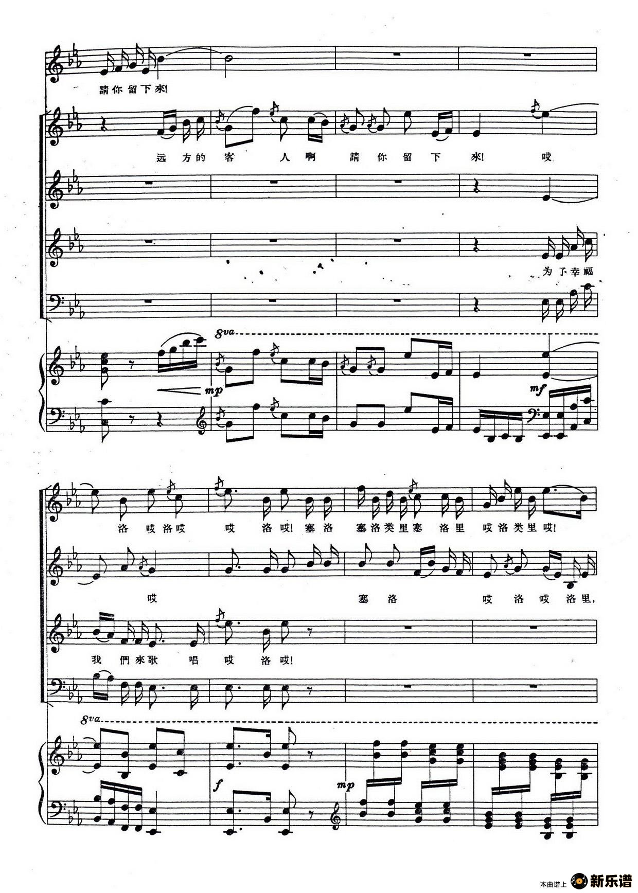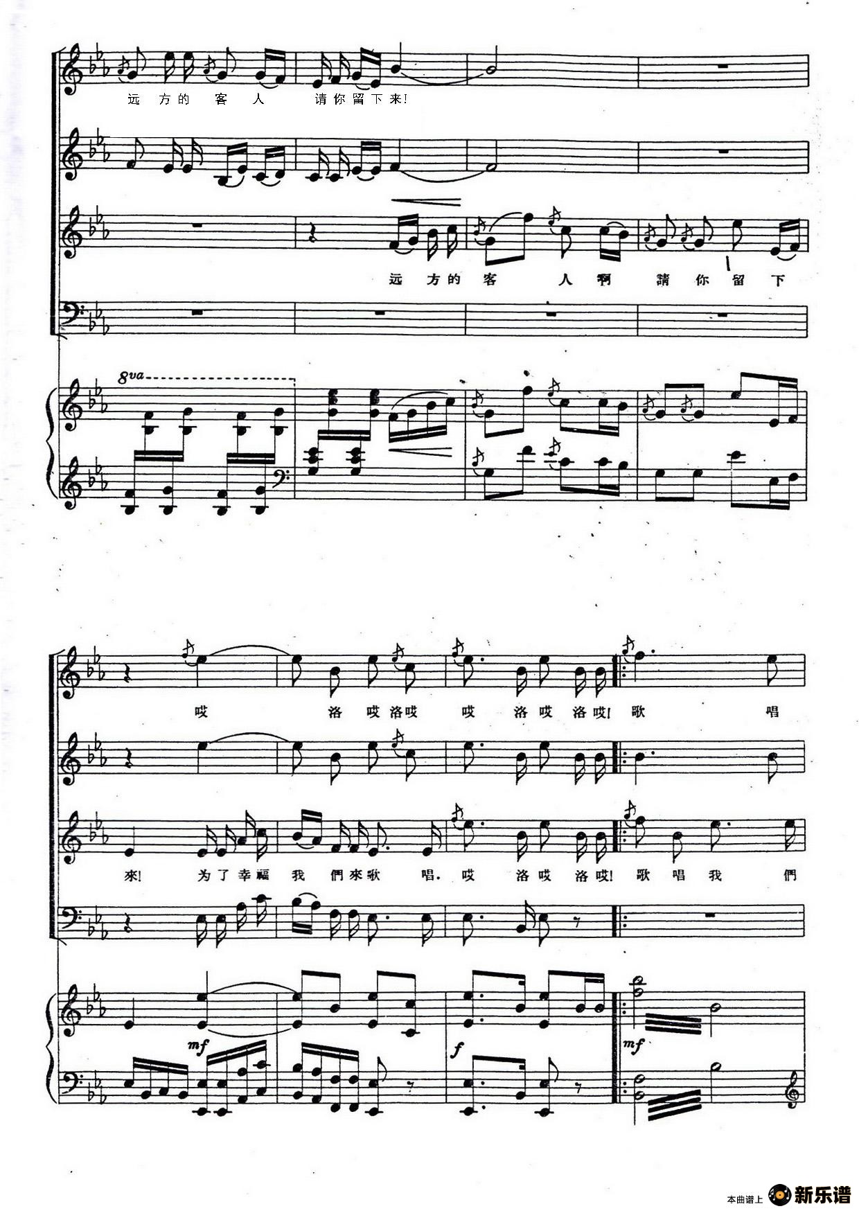 《远方的客人请你留下来(正谱)》简谱 1.辽宁通信之声合唱团 2.中央民族歌舞团