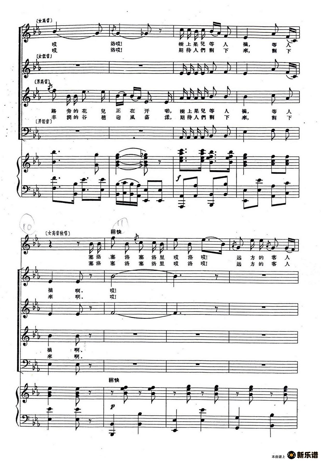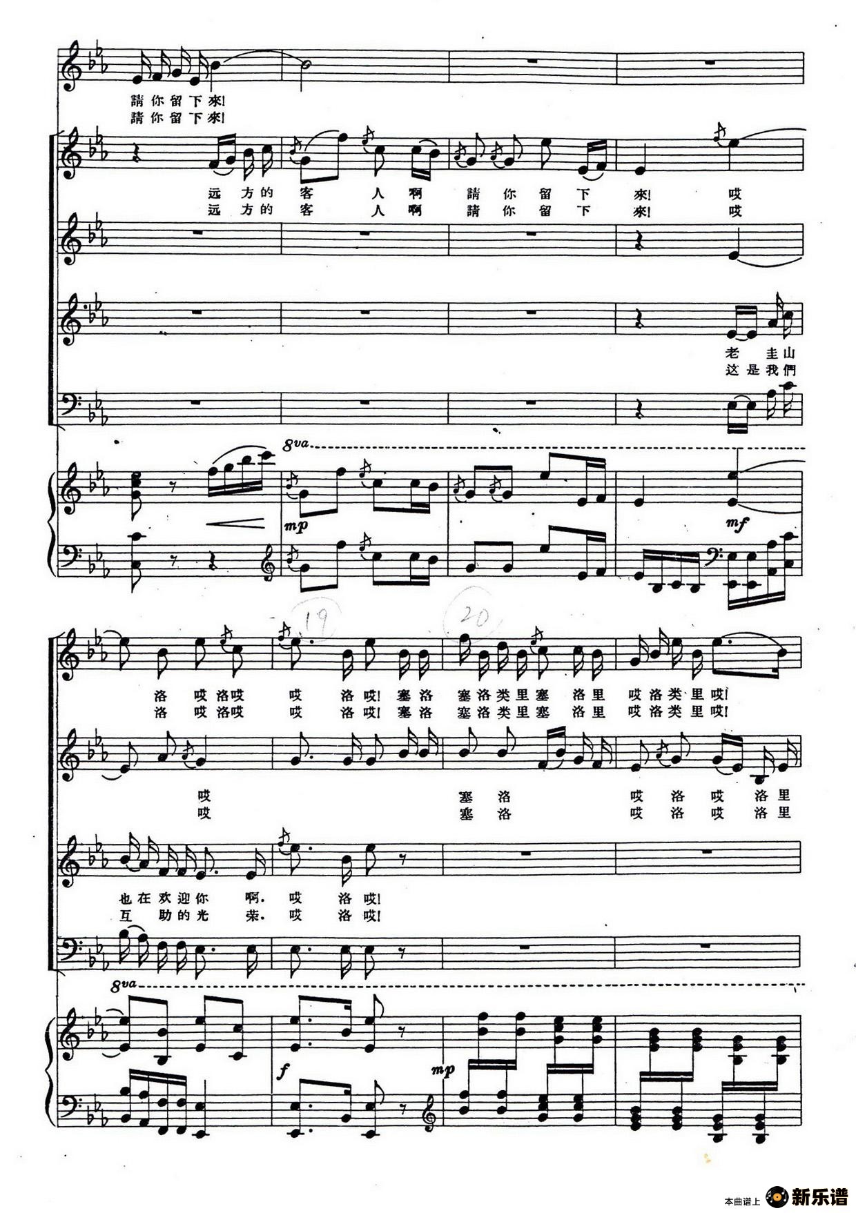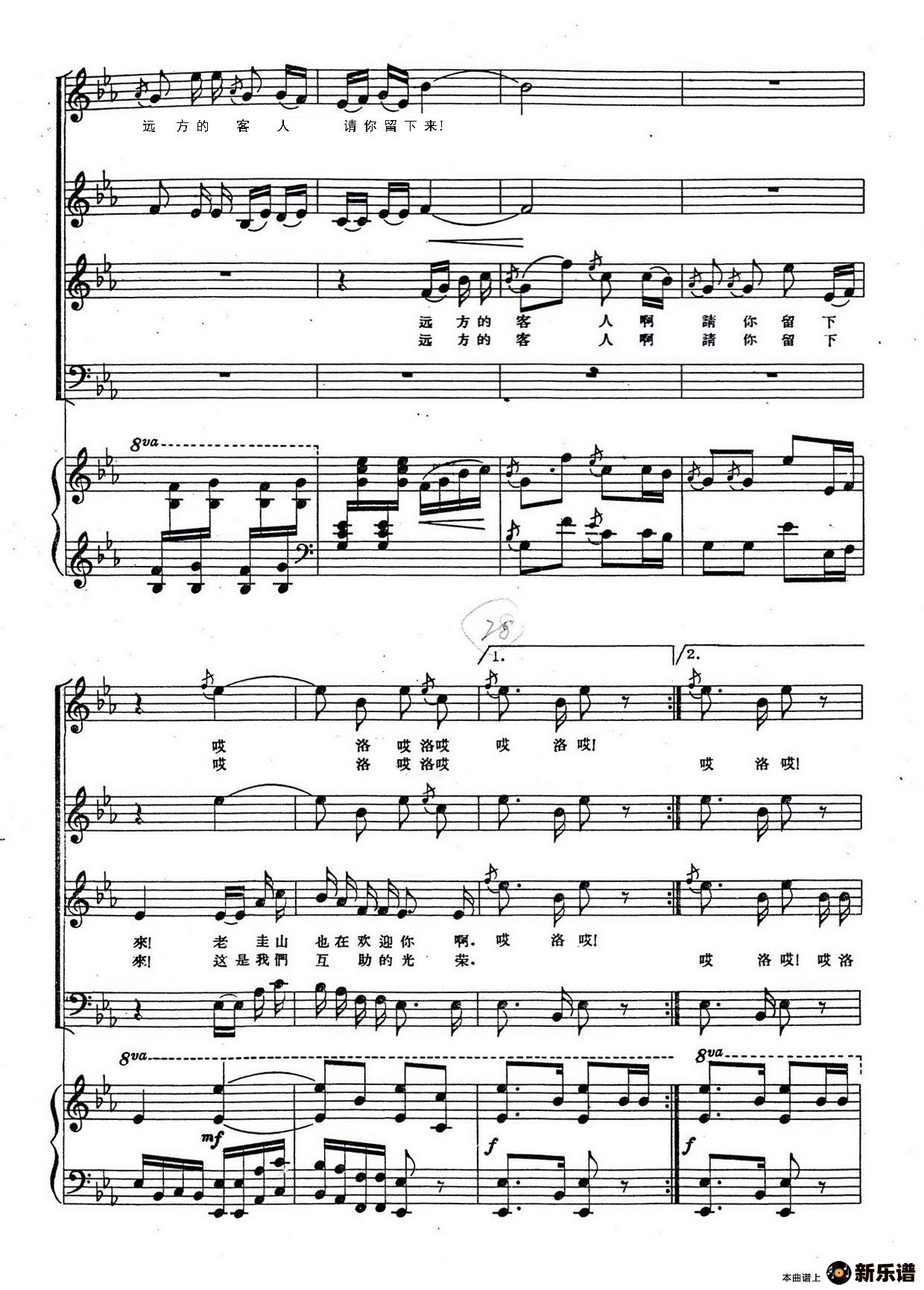 《远方的客人请你留下来(正谱)》简谱 1.辽宁通信之声合唱团 2.中央民族歌舞团