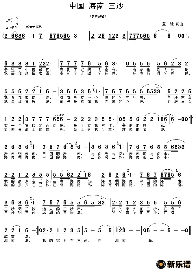 演唱的中国 海南 三沙歌词,中国 海南 三沙简谱.