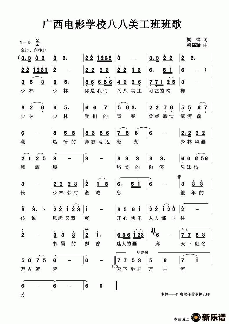 演唱的广西电影学校八八美工班班歌歌词,广西电影学校八八美工班班歌简谱.