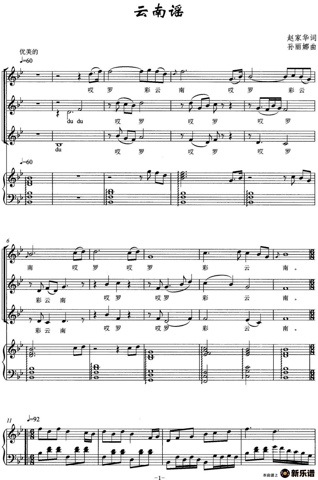 演唱的云南谣(正谱)歌词,云南谣(正谱)简谱.