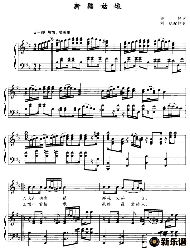 演唱的新疆姑娘1歌词,新疆姑娘1简谱.