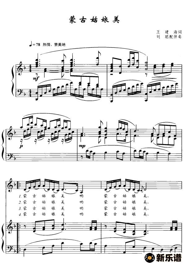 演唱的蒙古姑娘美1歌词,蒙古姑娘美1简谱.