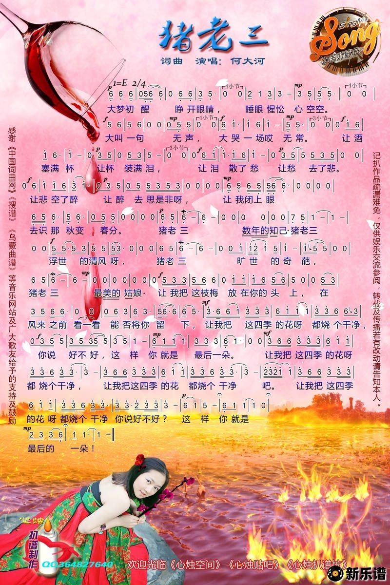 《猪老三(2016中国好歌曲)》简谱 何大河-心烛制谱