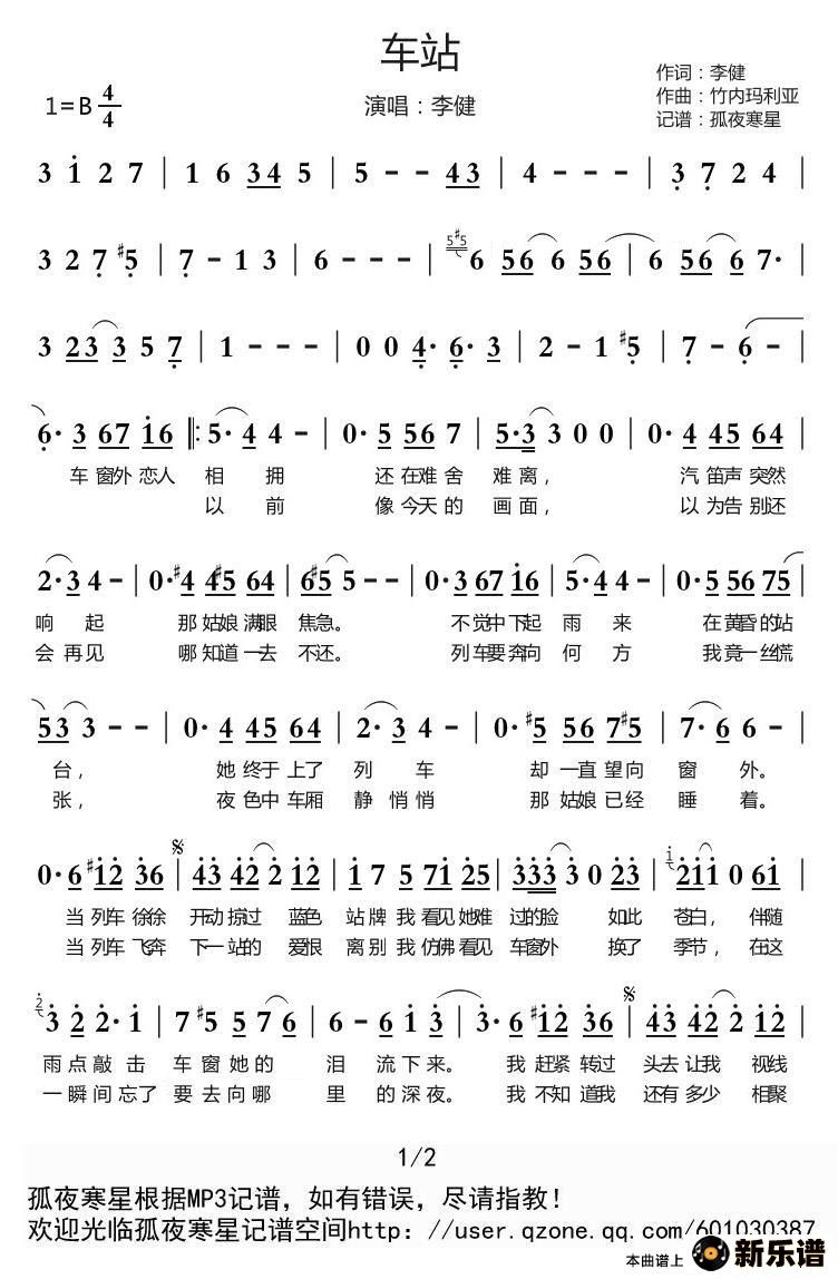 车站(李健《我是歌手第三季》)/李健 我是歌手第三季 相关曲谱