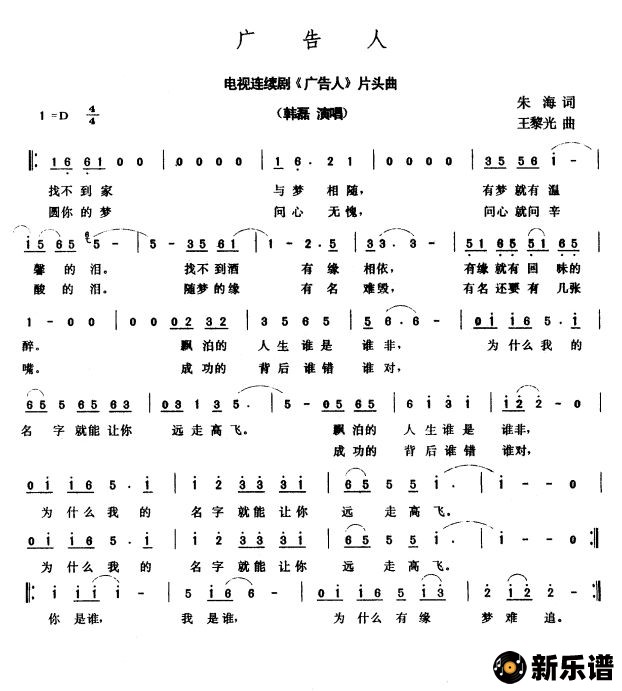 韩磊演唱的广告人(电视剧《广告人》片头曲)歌词,广告人(电视剧《广告人》片头曲)简谱.