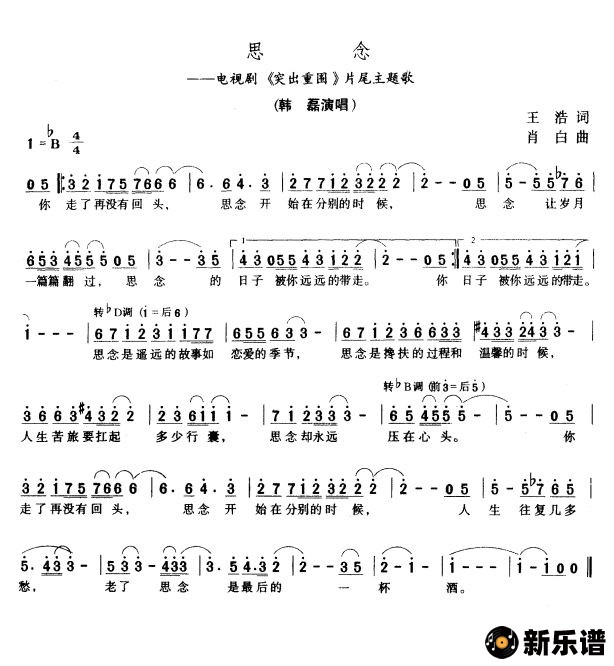 《思念(电视剧《突出重围》片尾歌)》简谱 韩磊-小叶子制谱