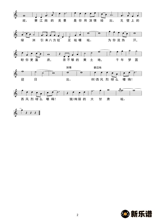 好一个大甘肃(线谱)