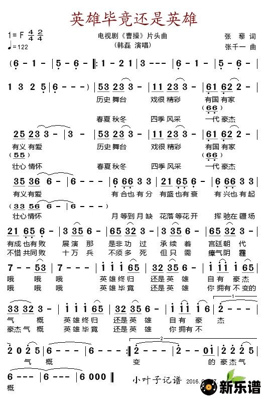 《英雄毕竟还是英雄(电视剧《曹操》片头曲)》简谱 韩磊-小叶子制谱