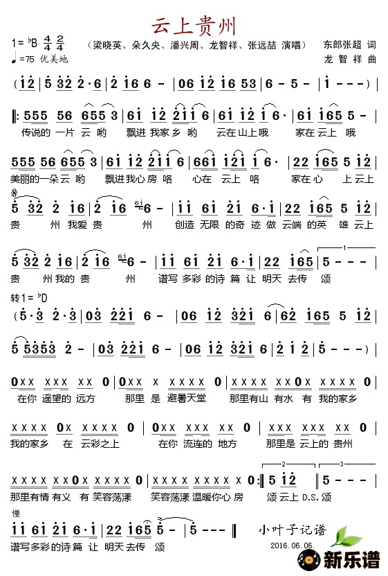 云上贵州 最新曲谱